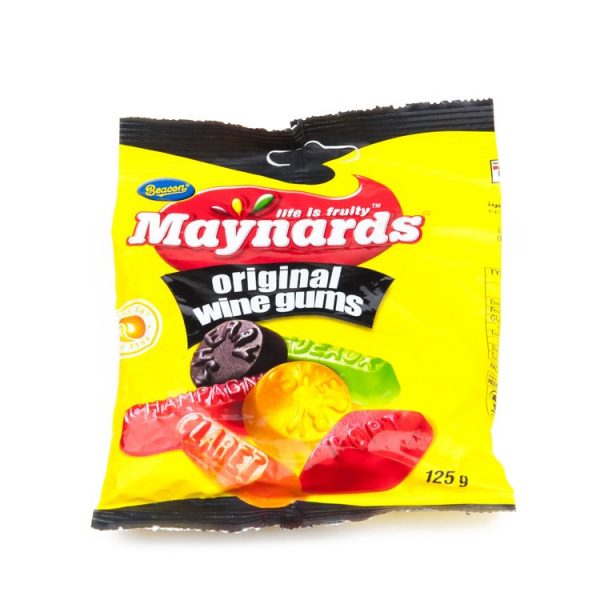 Beacon’s chewy flavored sweets (125g) Wine Gums are chewy sweets similar to gumdrops without the sugar coating. The gums come usually in five shapes: kidney, crown, diamond, circle and rectangle, and are labelled with six names: port, sherry, champagne, burgundy, gin and claret.